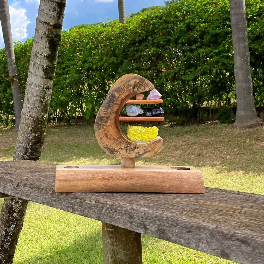 Seu formato de lua segue a linha da formação natural da tora, o que confere 100% de exclusividade em qualquer um dos altares.